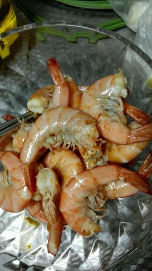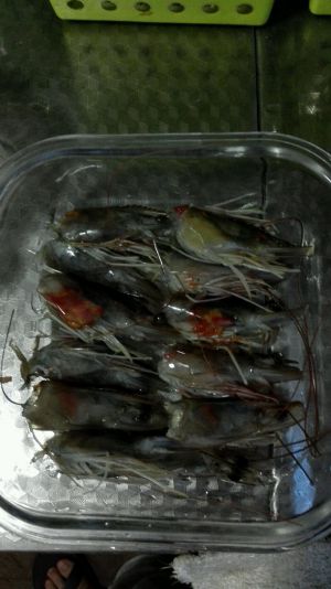 用煎虾的油继续煎虾头,之前先放点洋葱。虾头下锅后按压,敲打虾头将虾油虾膏煎出。之后放些许清水烧开备用。