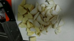 土豆,杏鲍菇切好备用。土豆不要块大,省的不入味道。