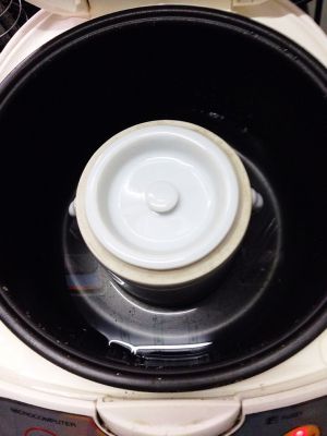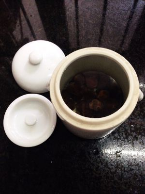 炖盅放置炖锅里隔水焖炖40分钟至桂圆肉饱满、圆润