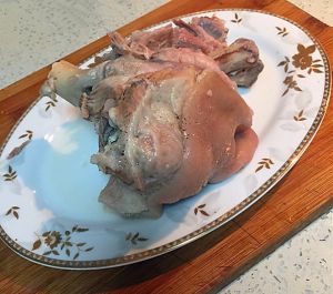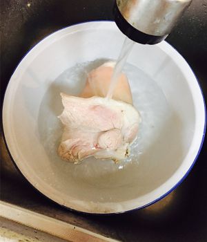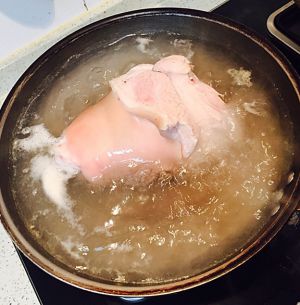 之后马上用冷水冲,这样做的目的是让肘子又软又Q