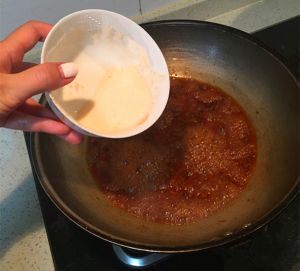 加入2大勺高汤,高汤就是刚才炖肉的汤