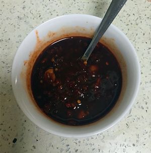将2勺郫县豆瓣、2勺酱油、3勺糖、1勺醋、1勺酒调匀