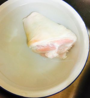先把肘子用冰水泡12个小时以上,去除血腥味