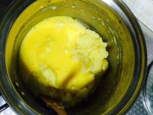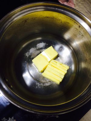 黄油、盐、糖、水一起放入锅中。