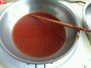 放入锅中待汁变浓稠后,淋在摆盘装饰好的鹅肝上。
