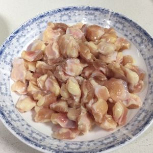 1、洗净鸡脆骨凉干水,用料酒、盐、生抽、姜码味。