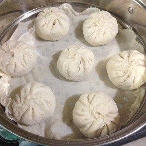 加了红糖和的面团,这个是做馒头的。与不加糖做包子的分开和面。