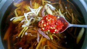 加入牛肉丝,百叶丝和粉丝