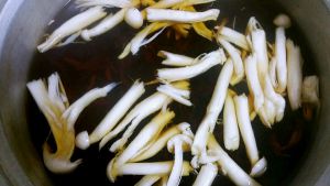 电饭锅里一次性加入足够的水,放入八渡笋煮开后,再煮30分钟(八渡笋多煮一会儿鲜美无比)