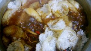 最后把油面筋用手撕成小片放入电饭锅,煮几分钟即可出锅享用