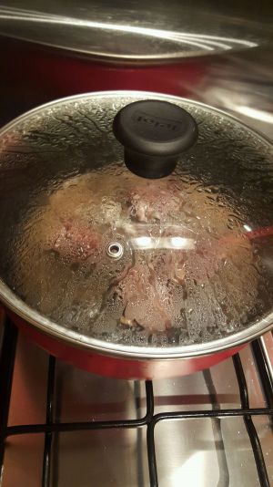 倒入葡萄酒后小火焖煮一下