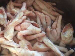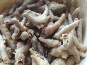 冷水冲洗干净煮开的鸡爪