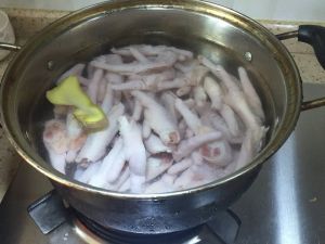 上锅冷水下入鸡爪烧开