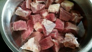 用电压力锅将肉、葱姜花椒大料及少量水压熟