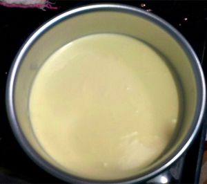 将芝士提前2小时从冰箱拿出恢复室温,然后将芝士切块,放入大碗中,隔80度热水用打蛋器打到润滑无颗粒。