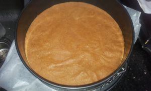 饼干碎倒入蛋糕模,用小勺压实,放入冰箱冷藏备用。(做这个的时候忘记拍照了,这张是第二次做的时候拍的)
