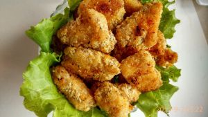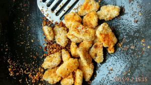 烤箱烤好,取出锅里放入少许油放入花椒爆香在放入少许辣油翻炒均匀麻辣香嫩的鸡米花就好了!