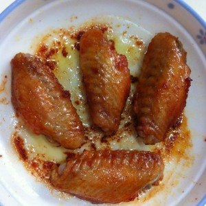 翅中退冰后,清水洗净。背面划上一刀,或者用牙签插上些许小洞。目的是更好的入味。