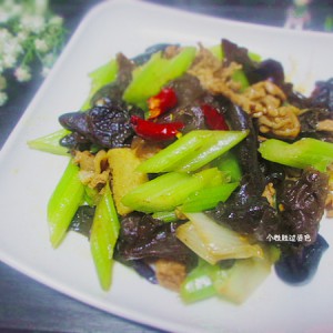 放入芹菜翻炒