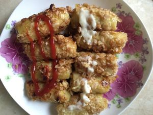油炸至金黄(先热锅冷油,下锅后改中火)