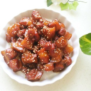在最后半个小时的时候最好守在锅旁边,尤其是最后十分钟,要随时调节一下火的大小,要是锅里汤汁还很多呢就开大火收下汤汁,最好收至汤汁粘稠即可出锅装盘,撒上点白芝麻点缀下。怎么样儿,诱人么?