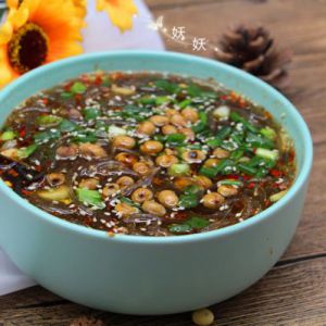 淋上适量的油,撒上熟黄豆,熟白芝麻,小葱末提香即可。