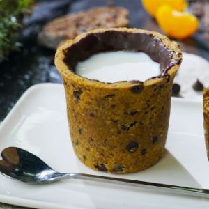 取出杯子,晾至不烫手后脱模,巧克力80g隔水加热融化,在烤好的杯子饼干内壁刷巧克力液
