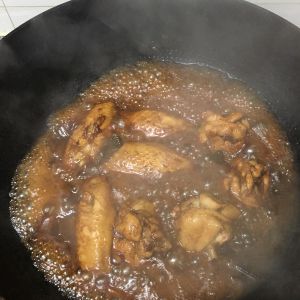 放入葱姜爆香然后放入沥干的鸡翅,煎到金黄色