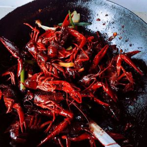 放入大料姜片葱段小龙虾继续翻炒,多炒会然后加一小罐啤酒炖煮,时间越长越入味