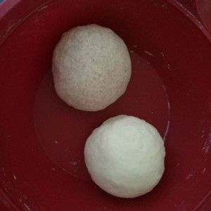 两种面团,深色的是加了黑麦粉的(比例白面,黑面4:1).面团揉至三光,手光、面光、盆光,盖上湿布醒着,开始制作馅料。