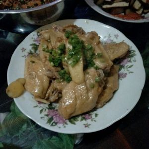 然后放入鸡翅小炒至黄,倒点酱油炒一分钟。再倒入可乐烧,烧的快完了收锅。