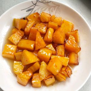 地瓜切块,不要太大,不然怕中间不熟,热油,倒入地瓜炸至金黄色捞出沥干,可用筷子戳一下看是否容易穿透判断生熟