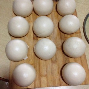 发酵好就是使劲揉面排气,一个人没法拍照反正揉面是很累人的特别是初学者,揉好馒头放在案板上醒半小时,