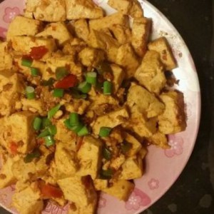 出锅后,撒上小葱花即可。色香味俱全的麻婆豆腐就大功告成啦!小主,请用膳!