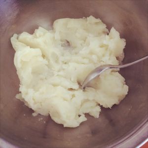 蒸熟的土豆碾压成泥,加入盐调味