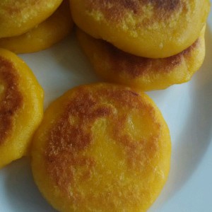 取适量南瓜面,做成掌心大小的饼子,做好后两面抹少许油,喜欢甜一点口味的,可以在饼中包入适量的白糖,或甜红豆沙。口感会更好些。