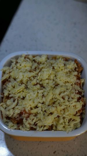 入烤箱,200度10-15分钟,大家烤箱牌子不一样,大小也不同,所以你烤的时候看着表面的芝士,颜色略焦就可以了
