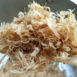 出锅后如果还有水分,收汁稍干,放到保鲜袋,用擀面杖擀碎。