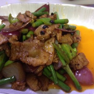 炒至肉刚刚发白,放豆豉 豆瓣酱 继续煸炒