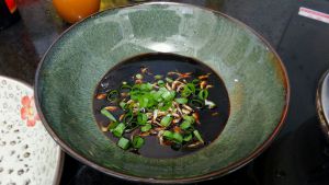 虾皮,葱,生抽老抽适量,鸡精适量,做汤底