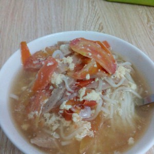油锅热后 倒入切好的西红柿 炒一会在倒入打散的鸡蛋 在炒下 然后倒入热开水 最后加入虾米和香肠 焖一会就可以了
