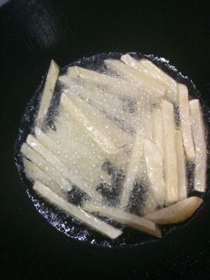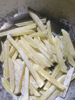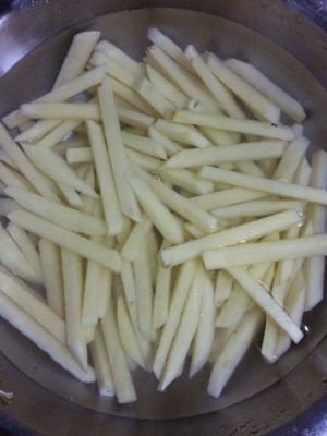 土豆切条泡水过淀粉,稍微粗点(油炸会缩小)