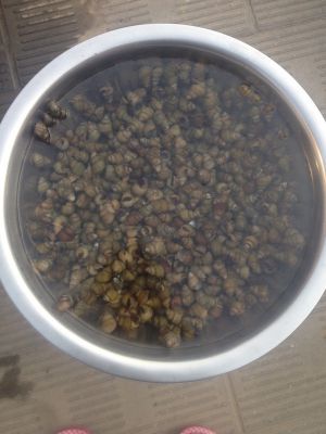 将热开水倒入锅中,漠过田螺,盖盖儿焖10-15分钟,称出即可