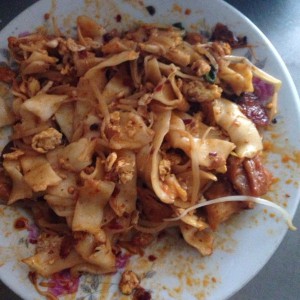 放入事先煎好的鸡蛋,翻炒收汤,就可以装盘了,我是家里没有手擀面了,用的刀削面
