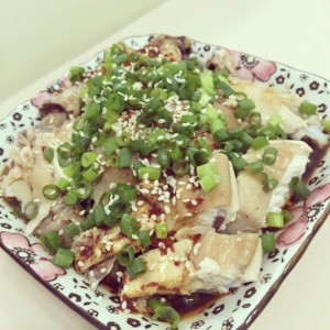 煮好后把鸡夹出来,放凉后再切,用来砍还是挺费劲的,要是你用鸡腿可以在这里把骨头去掉,再切,也可以用冰水将鸡过冷再切,