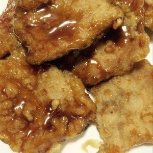 开始第三次油炸,炸到金黄,稍微褐色,取出,这时候肉非常酥脆