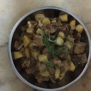 先将排骨过水,土豆削皮切块,花椒,干辣椒备用
