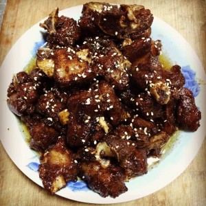 装盘后撒点熟芝麻。这种做法弄出来的排骨很入味儿,干香不腻。
