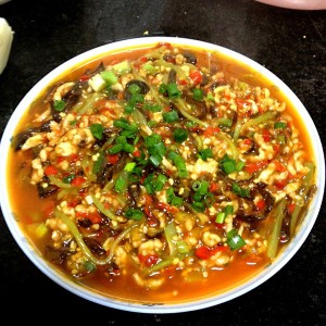 油烧热下肉丝炒散盛起来,下剁椒、蒜末、姜末炒香。下木耳炒两分钟,下炒散的肉丝,加酱油、鸡精炒匀,下青笋丝炒一分钟,倒入调好的调味汁、葱花。炒匀起锅。大功告成