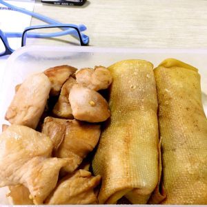 辣子鸡胸和豆腐皮卷菜菜谱做法